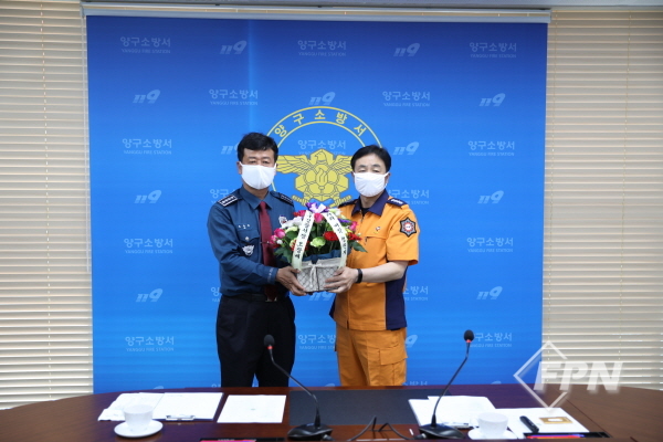 [FPN 정현희 기자] = 양구소방서(서장 김영조)는 지난 26일 오전 관내 재난 대비 협업ㆍ공조체제를 강화하기 위해 오창배 양구경찰서장이 방문했다고 밝혔다.