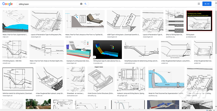 먼저 현대에 만들어진 수중보의 경우 그 목적에 따라 ‘정수지’ 또는 ‘감세지(Stilling basin)’라고 부르는 구조물을 만듭니다. 이 구조물의 목적은 댐이나 보에서 방출되는 물의 에너지를 감소시키기 위해 만든 인공구조물인데 이게 수중에서 여러 가지 형태로 제작될 수 있습니다.