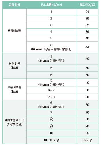 물론 여러 산소공급 장치에 대한 적응증에 관해 배우긴 했지만 의사의 지시 없이 환자를 평가하고 알맞은 장치와 유량을 결정해야 하는 건 익숙하지 않았던 기억이 있다. 여기엔 정확한 환자평가와 처치법에 대한 충분한 이론적 근거가 뒷받침돼야 했기 때문이다.