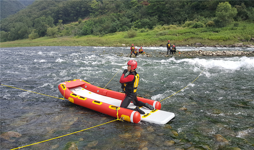 2-라인/4-라인 보트를 운용하기 좋은 환경 위 보트 기술을 운용하기 위해선 가급적 수로의 형태가 일직선으로 된 곳이 좋습니다. 또 폭이 좁은 수중보 구조 작전이나 차량 위 고립사고 등에 사용하기 좋습니다.