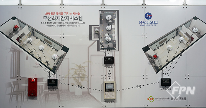 이번 전시회에선 기존 유ㆍ무선의 복합 방식이 아닌 수신기와 중계기 간 연결까지 무선으로 구현한 신제품을 선보였다. 이 제품은 현재 한국소방산업기술원의 형식승인을 진행 중이다.