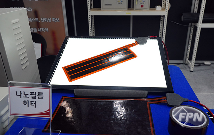 나노필름 히터는 전자부품연구원 나노소재 부품연구를 통해 개발된 신기술로 탄소나노에 불연재료인 PI필름을 입힌 면상발열체다. 안전성과 신뢰성, 경제성을 높인 발열 기술로 평가받으며 수소차나 전자제품, 스마트팜 등 다양한 분야에서 활용된다.