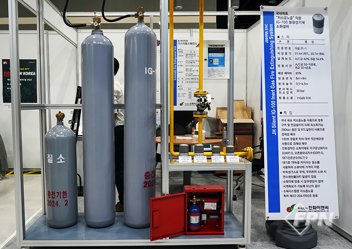 (주)진화이앤씨(대표 박종원)는 전기실이나 발전기실, 전산센터 등에 적용되는 IG-100 불활성기체를 활용한 가스소화설비에 저소음 노즐을 적용한 신기술을 선보였다.
