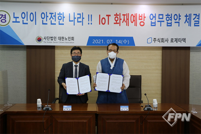 [FPN 최누리 기자] = 무선 자동화재탐지설비 전문업체 (주)로제타텍(대표 조영진)은 대한노인회(회장 김호일)와 IoT 화재 예방 업무협약을 체결했다고 지난 14일 밝혔다.