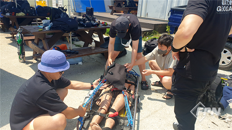 7월 1일부터 2일까지 강원도 강릉에서 참여를 희망하는 직원들과 ‘수중 들것을 이용한 인양 훈련’을 진행했다. 부산에서는 부산소방학교 구조 교관, 특수구조단 등 6명, 강원도에서는 소방서 직원 5명, 중앙119구조본부에서는 2명이 참가했다.