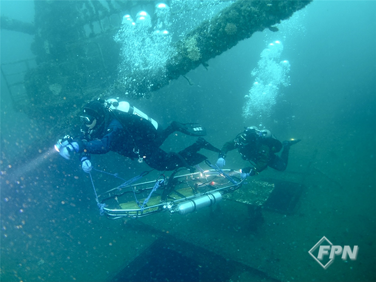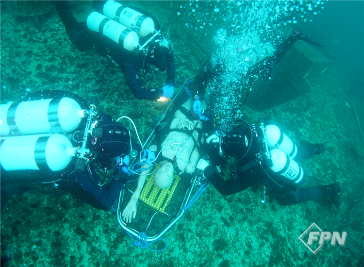 상승 후 보트에 미리 잠수를 끝내고 대기하고 있던 다른 팀에게 수중 들것과 마네킹을 전달하면서 훈련을 종료했다.