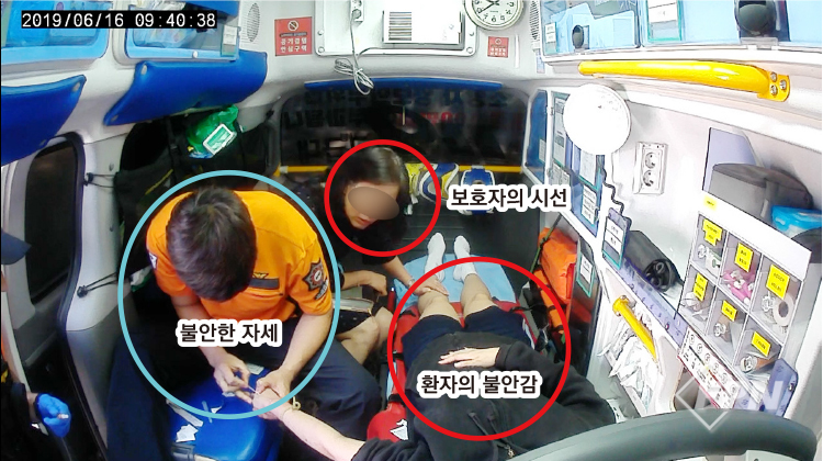 4. 이송 단계에서 정맥로 확보는 어떻게 해야 할까? 병원 밖 환경에서 정맥로 확보는 개인의 술기 능력 외에도 여러 가지 어려움이 숨어 있다. 환자와 보호자의 빠른 이송 요구, 사고 현장의 환경적 제약, 좁은 구급차 안에서 어려운 자세, 흔들림, 보호자의 시선 등이다.