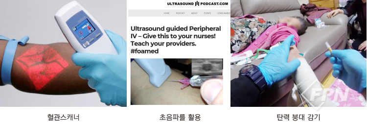 최근에는 정맥로 확보가 어려운 해부학적 구조를 가진 상황에서 몇 가지 도움을 줄 수 있는 도구와 방법들이 임상에 적용되고 있으니 참고하기 바란다.