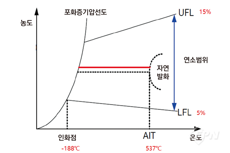 이때 주변에 메탄가스가 존재해도 연소점에 이르지 않아 폭발하지 않는다.