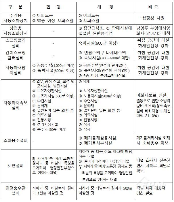 화재예방, 소방시설 설치ㆍ유지 및 안전관리에 관한 법률 시행령 전부개정령(안) 입법예고 보기 화재예방, 소방시설 설치ㆍ유지 및 안전관리에 관한 법률 시행규칙 전부개정령(안) 입법예고 보기