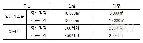 4) 공동주택 세대점검은 관계인(소유자, 관리자, 점유자) 또는 관리업자가 2년 이내 전 세대를 하도록 하고 작동점검만 실시하는 대상은 1회 점검시 50% 이상, 종합점검 대상은 1회 30% 이상 하도록 규정함(2021년 국무조정실 부패방지추진단 권고사항)
