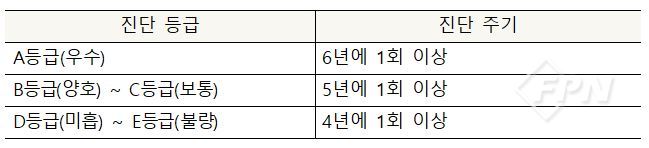 파. 화재예방안전진단 대상 및 진단 주기 등을 정함(안 제43조, 제44조) 1) 소방안전 특별관리시설물 중 공항, 철도, 항만 등 국가중요시설에 대해서는 진단기관으로 하여금 화재예방안전진단을 받도록 함