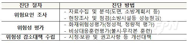 자. 화재예방안전진단은 위험요인을 조사하고 위험성을 평가한 후 위험성 감소대책을 수립하는 순으로 실시하도록 함(안 제42조)