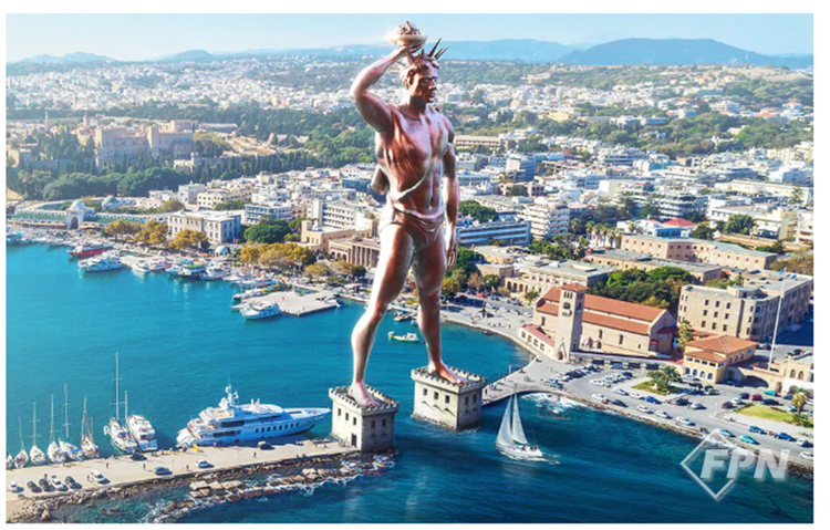 동상의 크기는 33m로 미국 자유의 여신상과 비슷한 크기였다. 하지만 BC226년에 무너졌고 그 이후로 다시 복원되지 못했다.