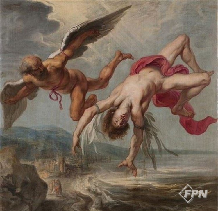 하지만 젊은 이카로스는 아버지의 경고를 귀담아듣지 않았고 하늘을 향한 욕망은 그를 점점 더 태양 가까이 이끌었다. 결국 날개 속의 밀랍은 모두 녹아버렸고 잠깐의 자유를 누렸던 이카로스는 바다 아래로 떨어져 최후를 맞는다.