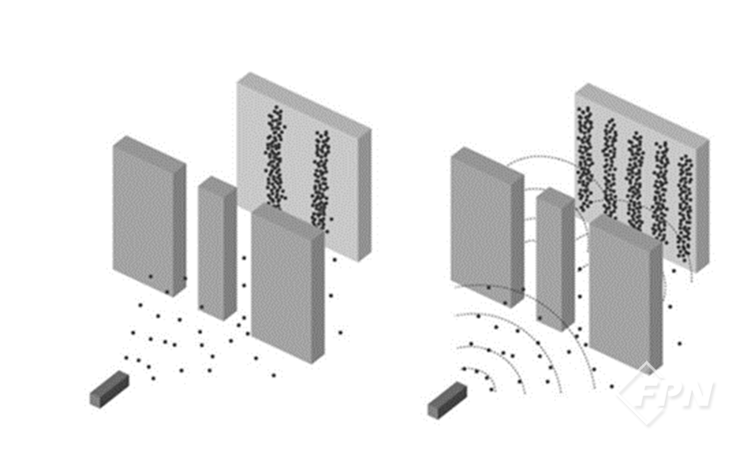 연못에 돌을 던지면 돌은 이동하지 않지만 돌의 에너지는 물결을 타고 동심원을 그리며 주변으로 이동하는 것과 마찬가지다. 빛이 만약 파동이라면 물과 같은 매질 속에서 간섭 현상이 일어나면서 속도가 점차 느려져야 한다. 사실 빛은 물속에서 1초에 22만㎞를 간다. 공기보다 더 느리다.