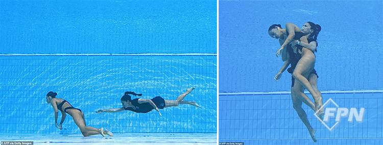 싱크로나이즈 대회 수중사고 지난 5월 헝가리 부다페스트에서 FINA(국제수영연맹) 월드 아쿠아틱 챔피언십이 열렸다. 경기 중 미국 수영선수 아니타 알바레즈가 의식을 잃고 수영장 바닥으로 가라앉았다. 놀란 코치는 옷을 입은 채 뛰어들어 그녀를 구조했다. FINA는 “바로 응급처치받은 알바레즈의 건강 상태가 양호하다”고 발표했다.