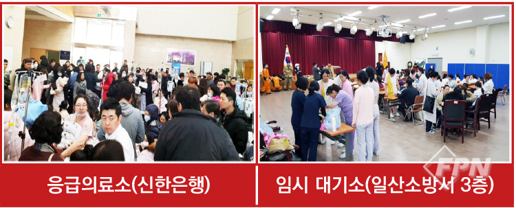 용인 수지안전센터 선착 대장은 현장 상황 확인 후 대응 2단계를 즉각 발령시킨다. 또 한 치의 망설임도 없이 다수의 인명피해가 예측됨에 따라 임시 응급의료소를 지정하고 운영토록 지시했다.
