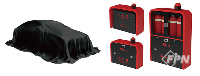 ![]() ▲ 이에스산전의 소화포와 보관 전용함 © 이에스산전 제공 |