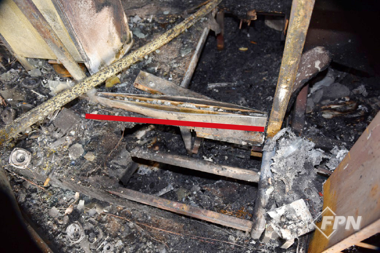 내부 구조는 어느 쪽에서 연소가 시작되던 전체적으로 연소 확대할 현장이었다. 연소하고 내부가 붕괴한 상태로 현장에서 발화지점을 찾고 원인을 규명해야 했다.