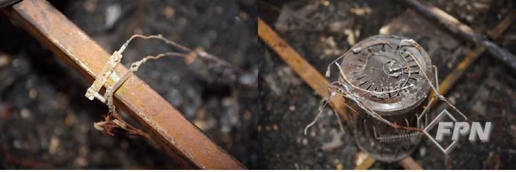 전기 히터는 간이로 제작해 사용한 히터인지, 규격제품인지 확인할 수 없었다. 하지만 왼쪽 히터는 작동하지 않은 상태에서 좌측으로부터 수열을 받은 형태였다. 우측 히터는 커버 나이프 스위치(Covered knife switch)가 OFF 상태로 잔류했다.