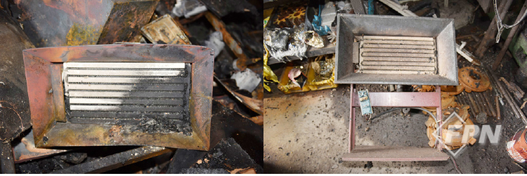 주택 내부 냉온수기와 냉장고가 심하게 소훼돼 있다. 냉장고 부품인 증발기 주변과 내부 전선을 확인했으나 용융이나 특이점이 없었다. 측면에 있던 냉온수기도 전기적 특이점이나 발열 형태가 관찰되지 않았다. 다른 제품들은 전기 플러그가 뽑혀 있고 소훼 상태가 심했다.