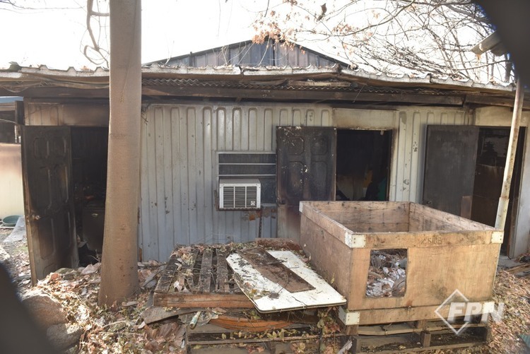 외부에서 봤을 때 오른쪽이 주택이고 왼쪽이 공장이다. 주택 부분에서 미연소 구간이 관찰된다. 그러나 주택 지붕이 집중적으로 수열 받은 형태였다. 공장은 전체적으로 고루 연소한 흔적이 관찰됐다.