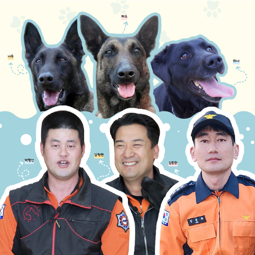 [소방수다Talk] 네 발 달린 영웅 ‘119구조견’의 든든한 동료이자 보호자를 만나다박형진ㆍ김용완 훈련관, 김원현 119구조견 운용자“안전헬멧도, 신발도 필요 없습니다. 비가 오든, 눈이 오든, 바람이 불든 전혀 개의치 않죠. 무엇도 내 앞길을 막을 순 없어요. 인간보다 무려 1만 배 뛰어난 후각, 50배에 해당하는 청각을 가졌음은 물론 작년 한 해만 무려 44명을 구조했답니다. 소방조직에 절대 없어선 안 될 존재, 어느덧 구조 현장에 영웅이 된 우리는 ‘119구조견’입니다”