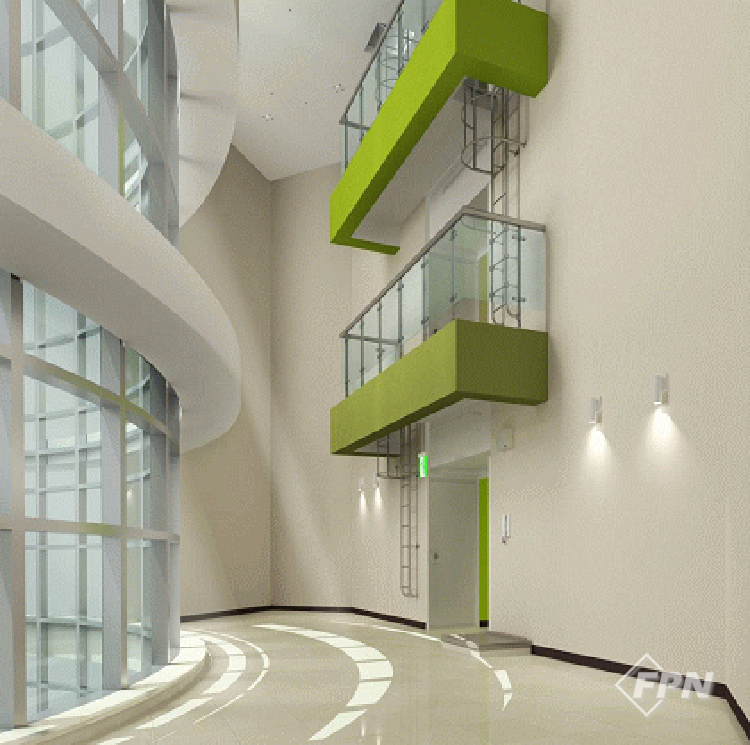 계단과 연결된 대피공간 고층건축물에 계단과 연결된 대피공간이 설치된 대상을 흔하게 볼 수 있는 건 아니다. 여기서 대피공간은 옥상광장을 설치해야 할 대상 중 경사 지붕 아래에 설치하는 대피공간의 개념과는 다르다.
