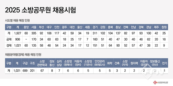 소방청(청장 허석곤)은 지난 24일 이 같은 내용이 담긴 ‘2025년 소방공무원 채용시험 시행계획’을 119고시(119gosi.kr) 누리집에 공고했다.
