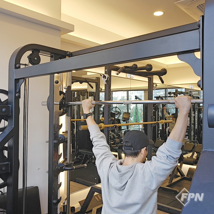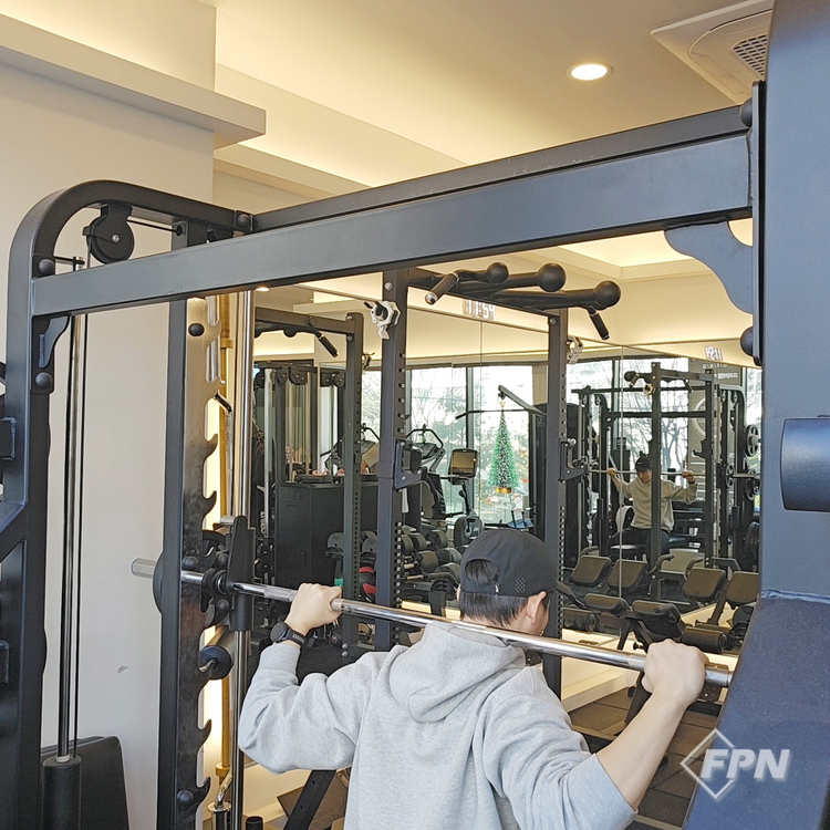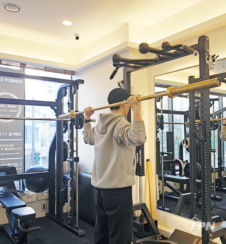 먼저 스미스 머신에서 운동하는 법을 배워보겠습니다. 바벨 양쪽이 고정된 상태인 스미스 머신은 바가 균형이 잡혀있어 근력에만 집중할 수 있다는 장점이 있습니다. 비하인드 넥 프레스같이 동작 수행이 조금 어렵거나 부상의 위험이 큰 운동일수록 스미스 머신의 장점을 살려 운동하는걸 추천해 드립니다.