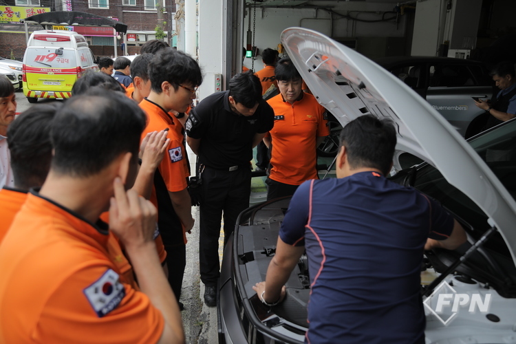 [FPN 정재우 기자] = 동대문소방서(서장 김흥곤)는 16일 오전 9시 30분 현대ㆍ기아차와 협업해 친환경자동차 사고 대응 교육훈련을 실시했다고 밝혔다.