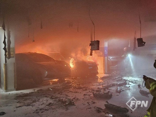 소방은 주차돼 있던 전기차에서 불이 시작된 거로 보고 정확한 원인과 피해 규모를 조사하고 있다.