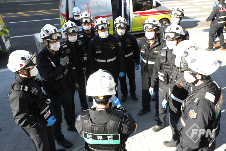훈련 각본으로는 방화ㆍ폭발물 설치에 의한 대형 화재가 발생해 다수의 인명피해가 우려된다는 상황이 설정됐다.