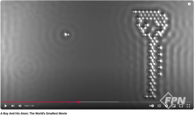 유튜브에서 ‘A Boy and His Atom’이라고 검색하면 IBM이 만든 세상에서 가장 작은 사이즈의 영화(영화라고 하긴 좀 그렇지만)를 볼 수 있다. 그림의 작은 구 하나가 원자다. 구슬 모양의 원자로 소년의 모습을 표현해 소년이 공을 갖고 노는 장면을 영화화했다.