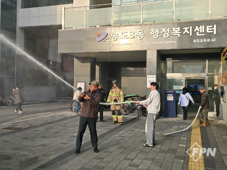 [FPN 정재우 기자] = 송도소방서(서장 이홍주)가 지난 27일 송도동 소재 송도3동행정복지센터를 대상으로 공공기관 합동소방훈련을 실시했다.