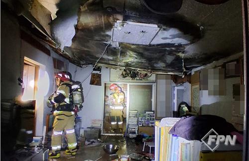 소방은 아궁이 불씨 취급 부주의로 인해 불이 난 거로 보고 정확한 원인을 조사하고 있다.