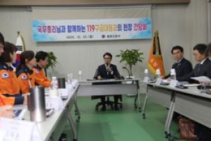 김 총리는 소방서 소회의실에서 장만석 서장으로부터 최근 수년간의 응급환자 이송 현황 등 119구급대의 활동내역 전반에 대해 청취하고 현장 대원들과 간담회를 가졌다.