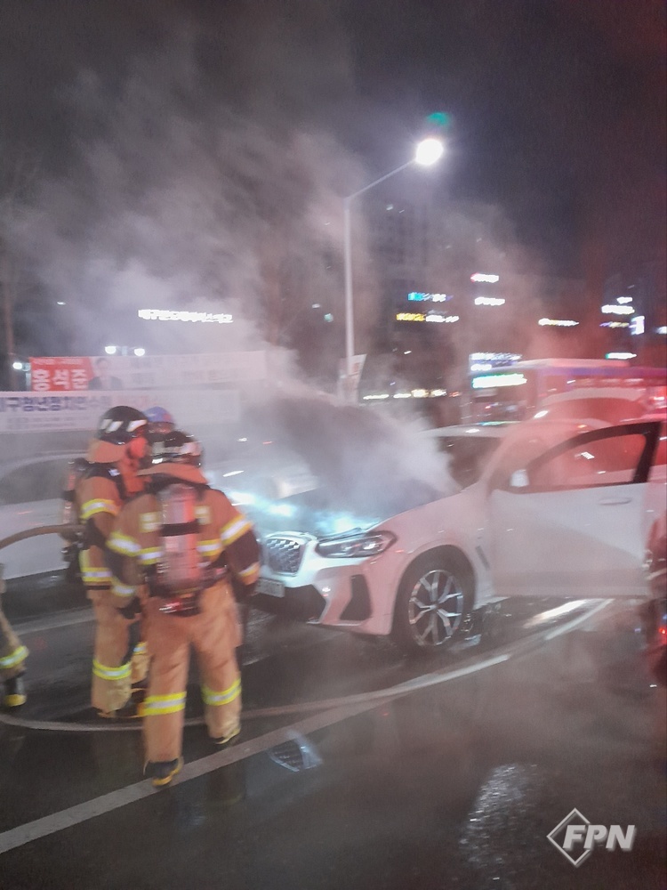 [FPN 정재우 기자] = 29일 오후 9시 43분께 대구 달서구 용산동의 도로를 지나던 차량에 화재가 발생했다.