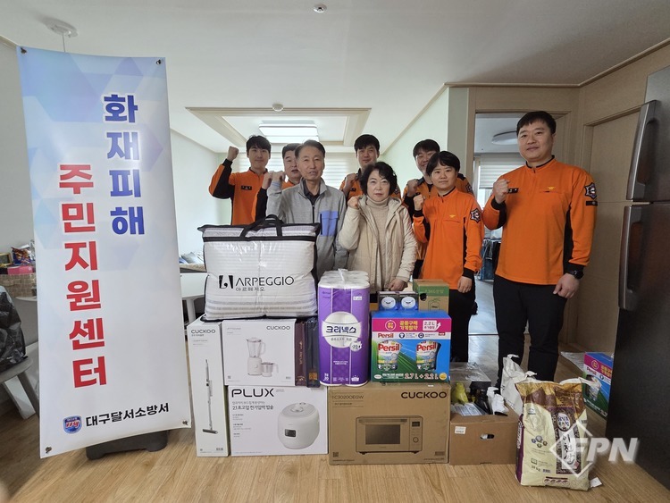 [FPN 정재우 기자] = 대구달서소방서(서장 김형국)가 주택 화재로 피해를 입은 주민에게 지난 14일 화재 피해 주민 지원센터를 운영하며 구호 물품을 전달했다고 밝혔다.