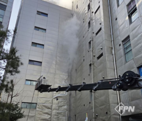 “외벽 패널 작업 중 불이 났다”는 신고를 받고 출동한 소방은 인명피해 대비 차원에서 오전 8시 57분 대응 1단계를 발령한 상태다. 현재 100여 명의 인력과 장비 40여 대를 동원해 진화 작업 중이며 인명 수색도 병행하고 있다.