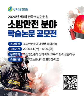 [FPN 최누리 기자] = 한국소방안전원(원장 이상규, 이하 안전원)은 소방안전 분야의 학술연구 활성화와 정책ㆍ제도 개선을 위한 기초 자료 발굴을 목적으로 ‘2026년 제1회 소방안전 분야 학술논문 공모전’을 개최한다고 밝혔다.