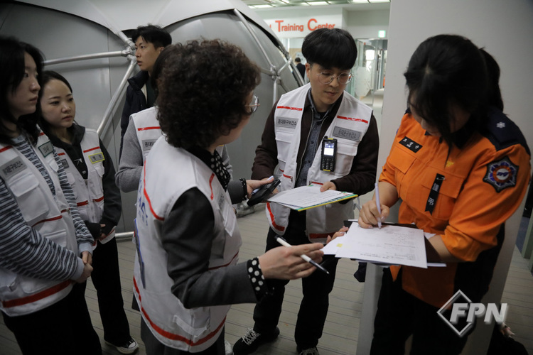 ![]() ▲ 동대문소방서 대원들이 재난 상황 총괄판에 기관별 조치 사항을 실시간으로 기록하고 있다. |
