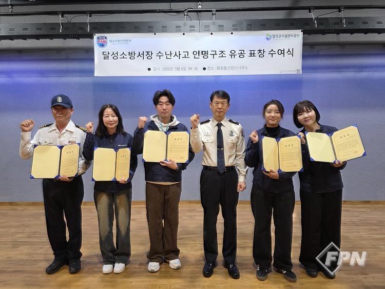 [FPN 정재우 기자] = 대구달성소방서(서장 노영삼)는 지난 6일 달성군 화원동산 내 화원역사문화체험관에서 낙동강 익수자를 신속히 구조한 유공자에게 달성소방서장 표창을 전수했다고 밝혔다.