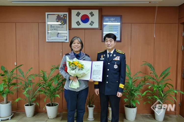 [FPN 정재우 기자] = 청주동부소방서(서장 한종우)는 주유소에서 발생한 화재를 신속히 진압한 경찰관 2명에게 18일 감사패를 수여했다고 밝혔다.