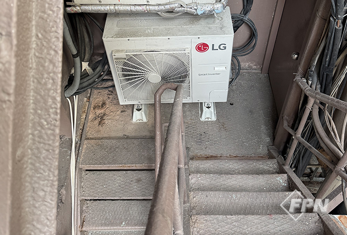 ![]() ▲ 불이 난 건물엔 옥외 피난계단이 있었지만 계단참에 에어컨 실외기가 가로 막고 있어 통행 가능한 폭은 40㎝에 불과했다. © FPN |