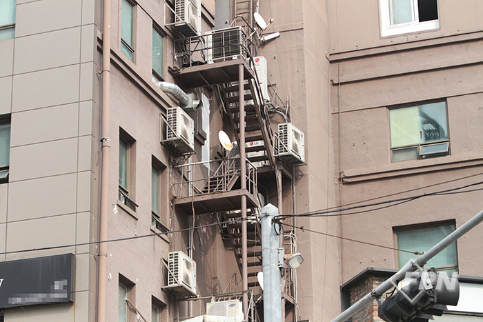 ![]() ▲ 소공동 건물에 설치된 옥외 피난계단 © FPN |
