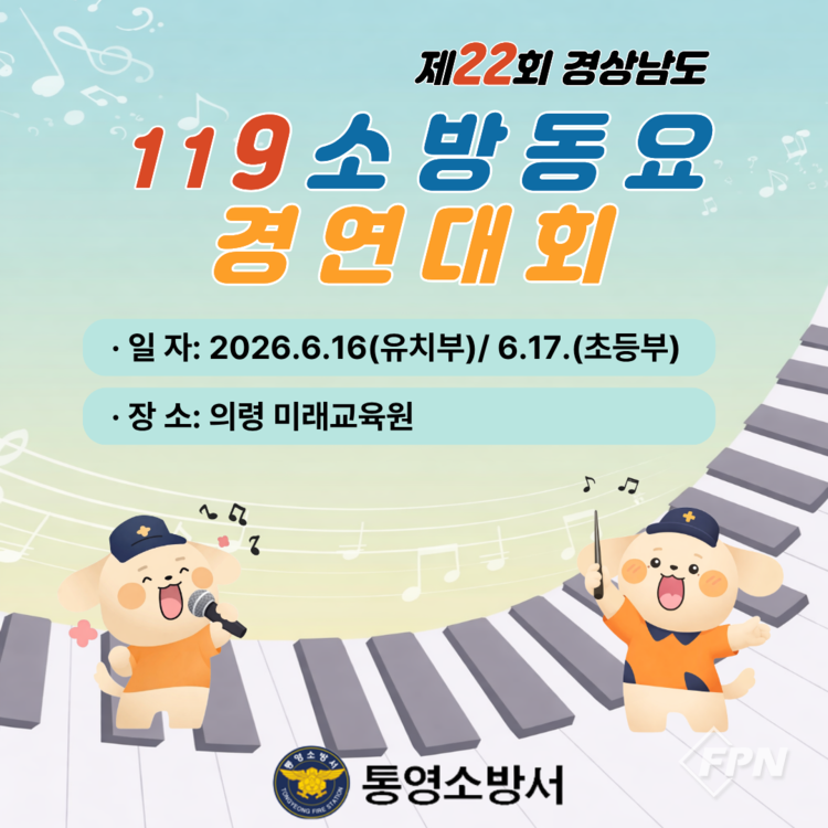 [FPN 정재우 기자] = 통영소방서(서장 박길상)는 제22회 경남 소방동요 경연대회 참가팀을 모집한다고 2일 밝혔다.