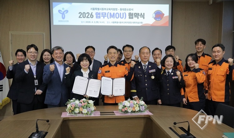 [FPN 정재우 기자] = 동대문소방서(서장 김흥곤)는 지난 2일 오후 서울시동부교육지원청에서 관내 학교(유치원 포함)의 소방안전 협력 강화를 위한 업무협약(MOU)을 체결했다고 밝혔다.