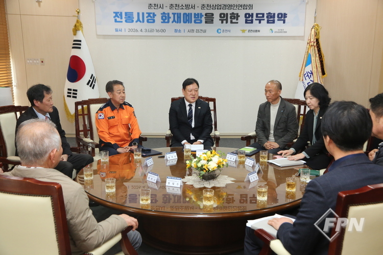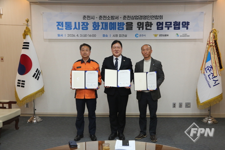 [FPN 정재우 기자] = 춘천소방서(서장 용석진)가 지난 3일 춘천시청 접견실에서 춘천시, (사)춘천상업경영인연합회와 전통시장 화재 예방을 위한 민ㆍ관 협력 업무협약을 체결했다.